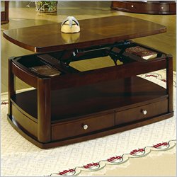 Homelegance - Coffee Tables - 326730R - The Lift Top Rectangle Coffee Table possesses a timeless traditional contemporary charm. Simply stylish with its elegant shape and console / shelf base with dual pull drawers, it eagerly lends its pleasant character to your sofa front and makes your living room all the more distinguished. A warm cherry wood finish completes its appeal. Wood top Coffee Table Features solid hardwood construction Coffee Table has a Cherry finish Cocktail table Features a lower fixed display shelf and two pull drawers Spring loaded lift top Ample storage space Some assembly required Specifications: Overall dimensions: 20 H x 48 W x 28 D Weight: 145.9 lbs.